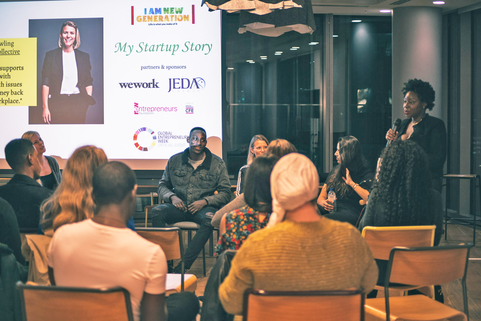 The second #mystartupstoryuk event took place on Thursday 15th November at WeWork South Bank, during the 2018 Global Entrepreneurship Week, and the event message was supported by WeWork, JEDA Energy and New Entrepreneurs Foundation.
